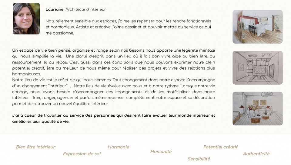 Je me suis d'abord formée pour être architecte d'intérieur pour aider les familles à organiser leur maison. Adapter les espaces et l'aménagement aux besoins de chacun, pour simplifier le quotidien, le rendre pratique et que chacun se sente à sa place et bien chez soi.